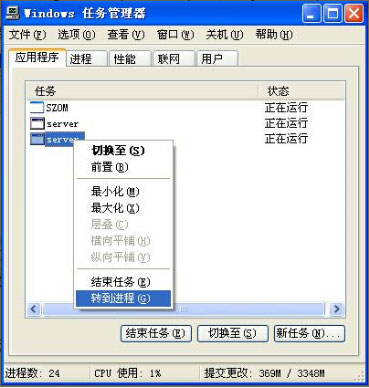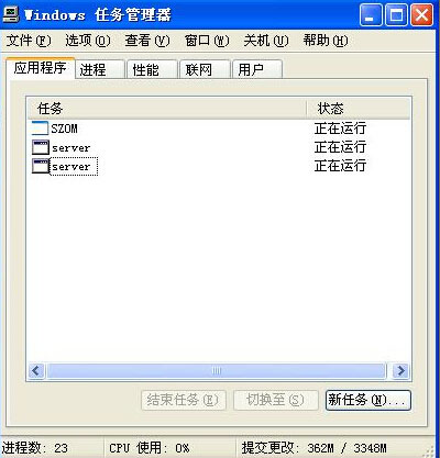 木馬程序或者病毒運行而引起的窗口變小的情況,這時同時按住 Ctrl+Alt+Del鍵調出操作系統的“任務管理器”,我們會發現除了“SZOM”的軟件外還有其他的運行程序。